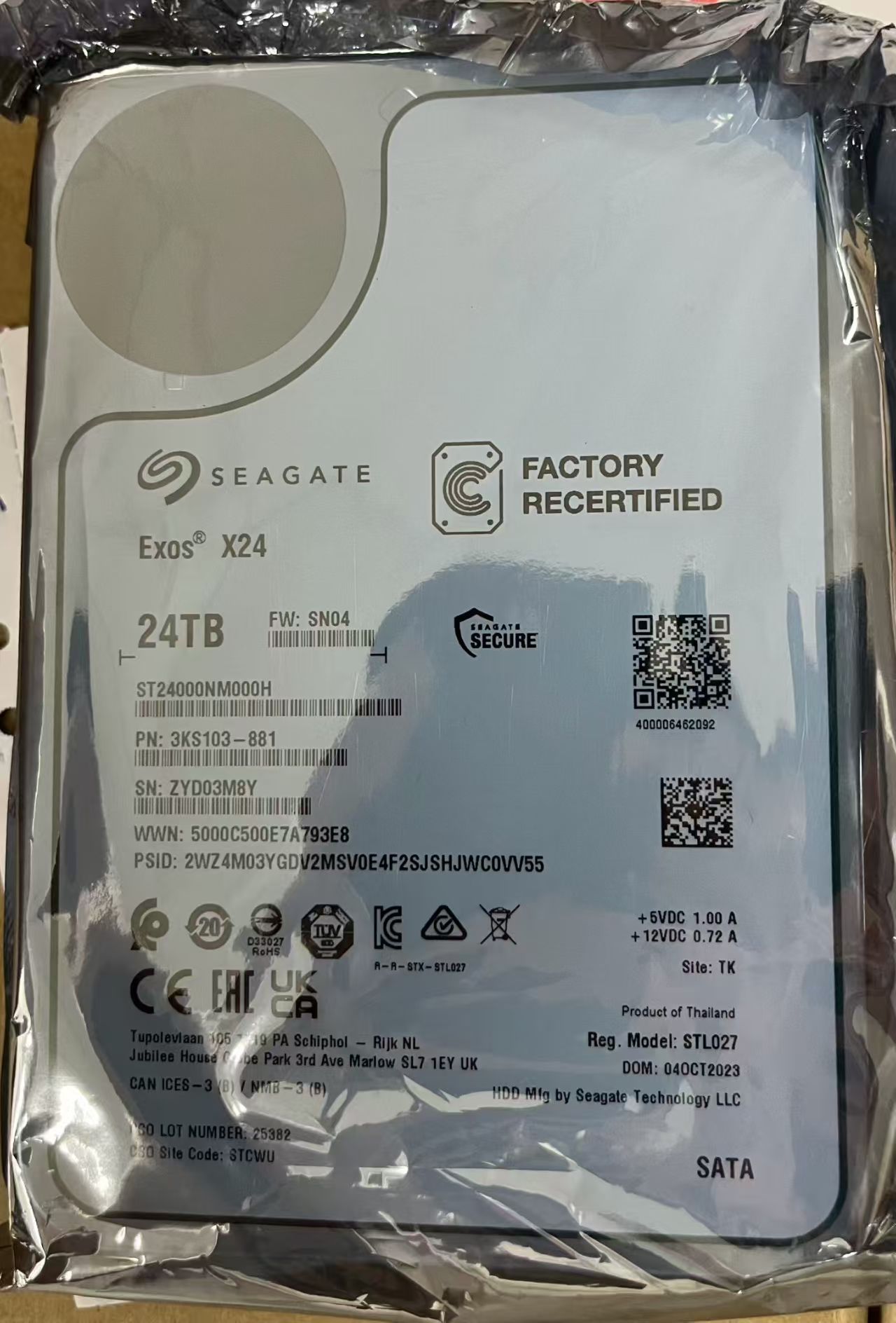 希捷24T官換盤/R盤/企業級服務器硬盤ST24000NM000H三年質保