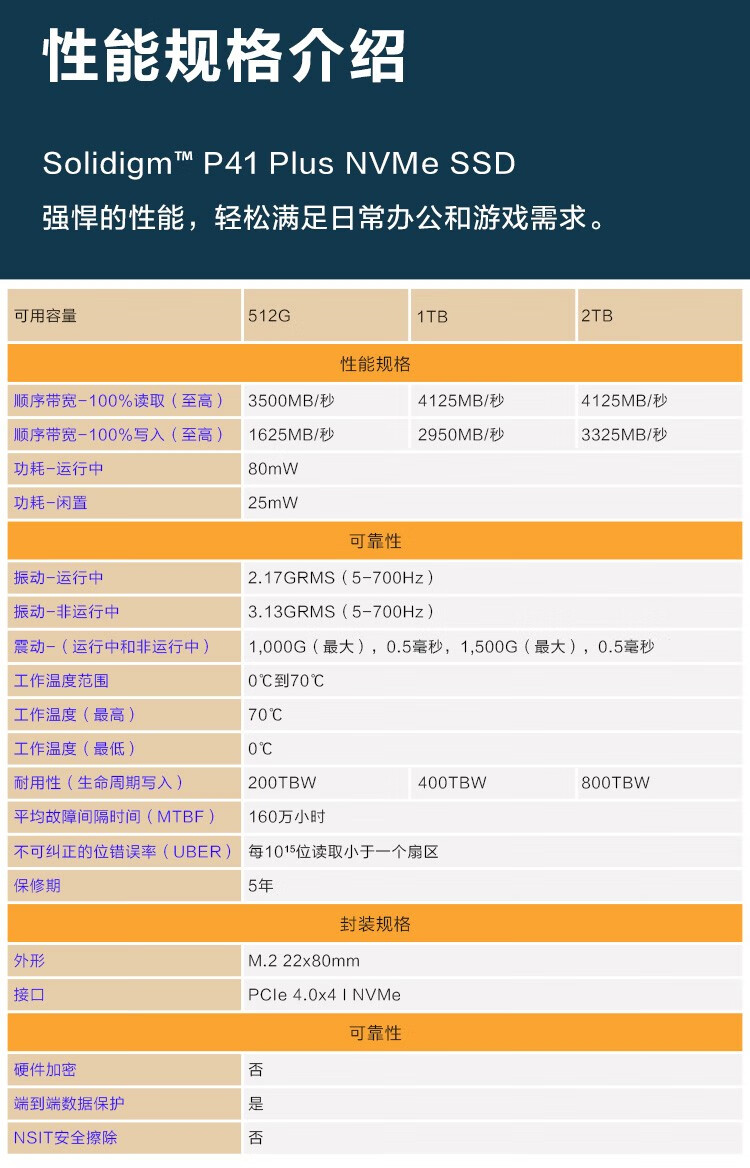 SSDPFKNU020TZX1 Solidigm/Intel P41 PLUS 512G M.2 NVMe固態(tài)硬盤