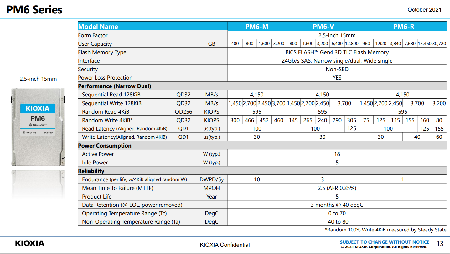 KPM61MUG800G鎧俠PM6-M 800G SAS 24G 10DWPD企業級固態硬盤