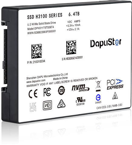 大普微H3100 6.4T U.2 PCIe 3.0 NVMe企業級SSD