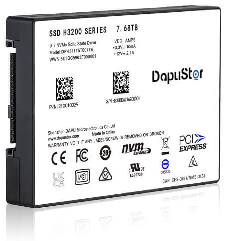 大普微H3200 7.68T U.2 PCIe 3.0 NVMe企業級SSD